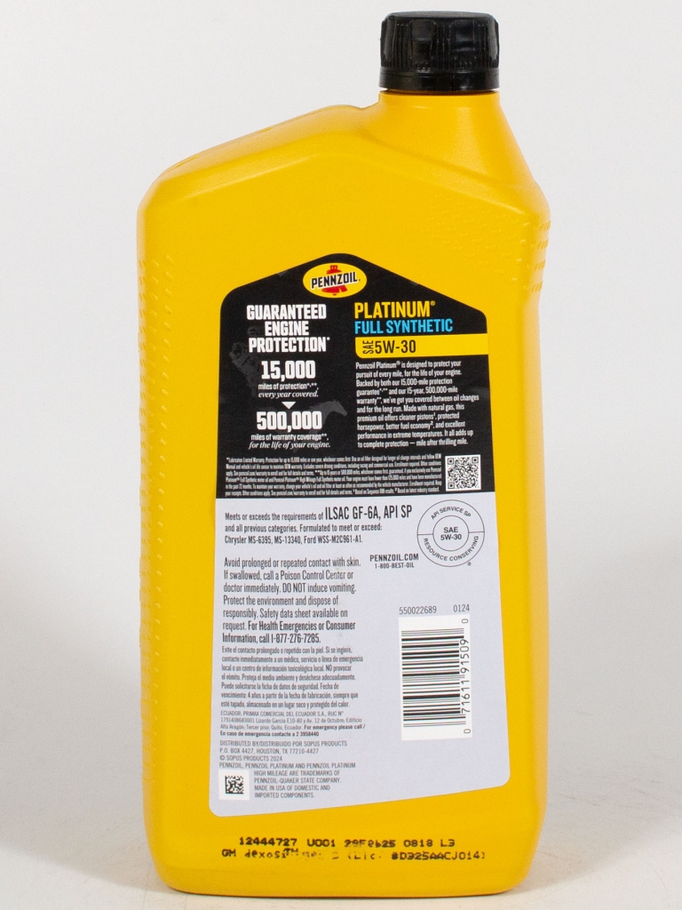 Моторное масло Pennzoil Platinum 5W-30, 0.946л